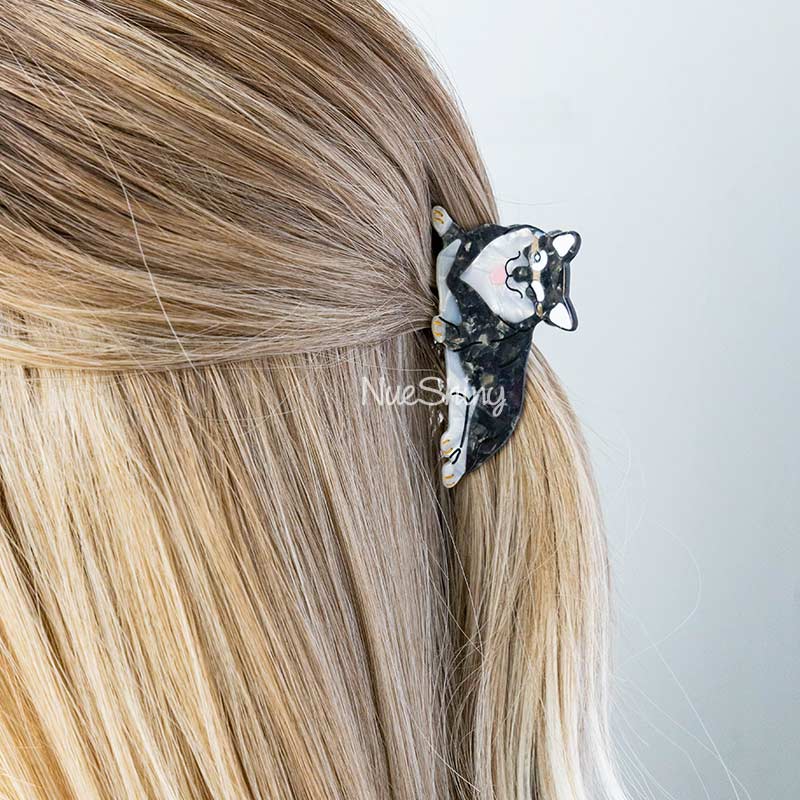 With a variety of colors, patterns, and sizes of dog cat hair claws available, you can find the perfect accessory like husky, doodle, golden doodle, pitbull, doberman, lab, labrador, pug, cocker spaniel, shih tzu, corgi, poodle, pomeranian, great dane, chihuahua, hound, samoyed, dachshund, terrier, german australian shepherd, bulldog, collie, beagle, golden retriever, basset, cavalier king, shiba, yorkie, springer and so on. If you do not find your dog breed, welcome inquiry to make a custom dog claw clips. Wouldn’t it be nice that you’re wearing the cute dog hair claw/clip while it matches with your beloved furry friend? Let’s explore our collection now!