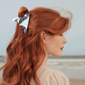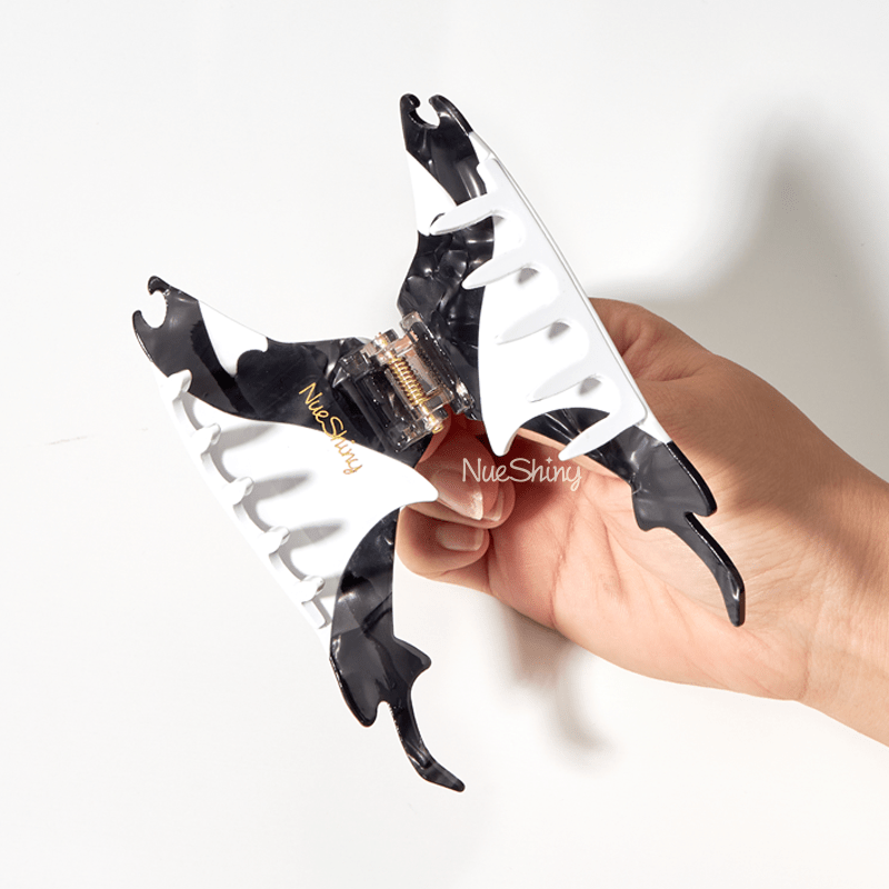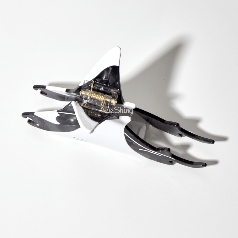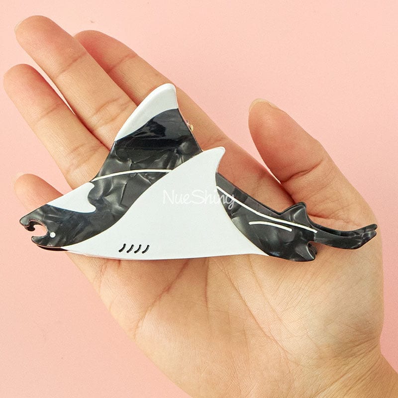 This hair claw, inspired by the manta ray, showcases the mystique and elegance of marine life with its unique black and white color scheme. Its streamlined shape, reminiscent of a manta ray gliding through the deep sea, is captivating and awe-inspiring.