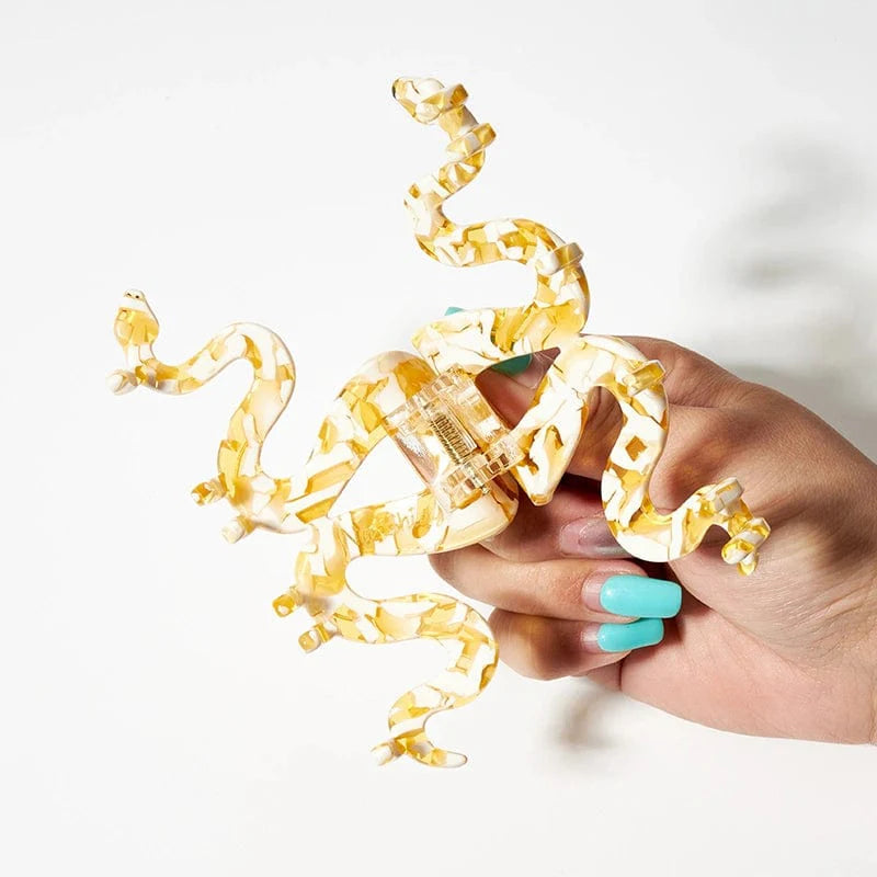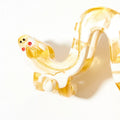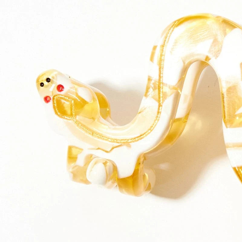 The ball python is a commonly kept pet snake. Despite their intimidating appearance, they are gentle, elegant, and quiet in nature. Inspired by their graceful posture, we've designed this hair claw, pairing it with unique random patterns of eco-friendly cellulose acetate material, ensuring each wearer possesses a one-of-a-kind hair accessory.