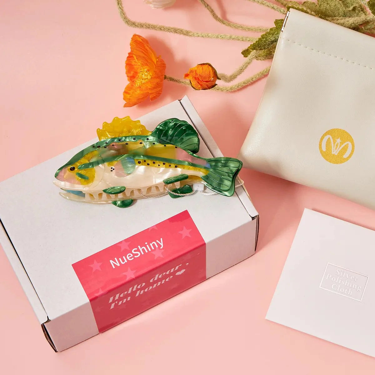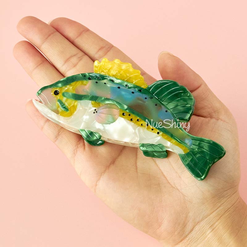Highly esteemed among anglers as a sport fish and renowned for its exhilarating "fighting spirit", smallmouth bass exhibits fierce and resistance. Smallmouth bass exhibits fierce and resistance, often enticing anglers with its fierce resistance. With profound cultural significance, North America hosts dedicated competitions for this green trout species. We hope this hair claw captures the spirit of the largemouth bass for all nature lovers and fishing enthusiasts and function as its name implies, it will hold onto your hair tightly and won't let go.