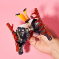 While watching the movie Rio, the designer was deeply inspired by Rafael, the vibrant toucan. Rafael is not just a loyal friend to Blu and Jewel, but also a symbol of the energy and diversity found in the Brazilian rainforest. In the film, Rafael’s iconic large beak represents the unique beauty of nature—it helps him effortlessly pick fruits and regulate body temperature, symbolizing adaptability, balance, and harmony with the environment.