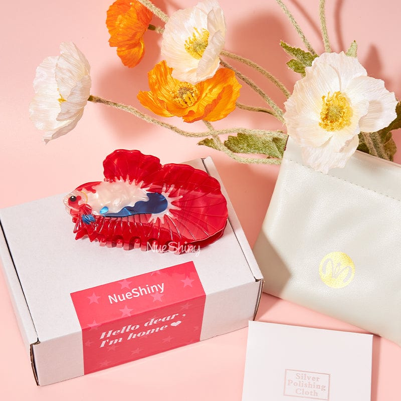The Betta Fish is a type of ornamental fighting fish known for its vibrant colors and diverse patterns. With a natural inclination for combat, they are particularly selective when choosing a mate. They insist on finding a partner with whom they share a deep connection and perfect harmony for successful pairing. This inspired us to design a hair claw resembling the splendid colors, reflecting the joyful emotions it evokes. We hope that every user can find their soulmate in life by wearing it while embracing the exuberance embodied by this design.