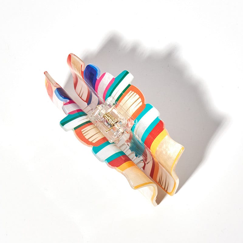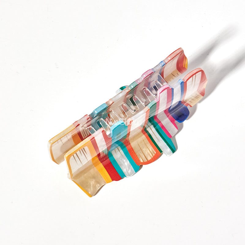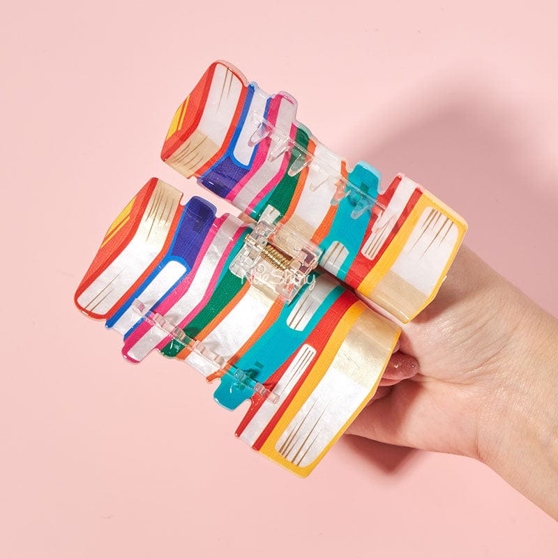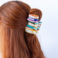 The Medium Orange Book Hair Clip showcases a bright orange color with a distinctive book motif. Its medium size makes it versatile for holding larger sections of hair or making a statement in your hairstyle while reflecting a love for books and reading.