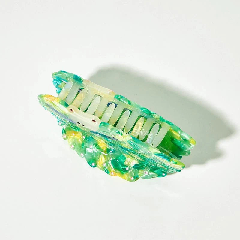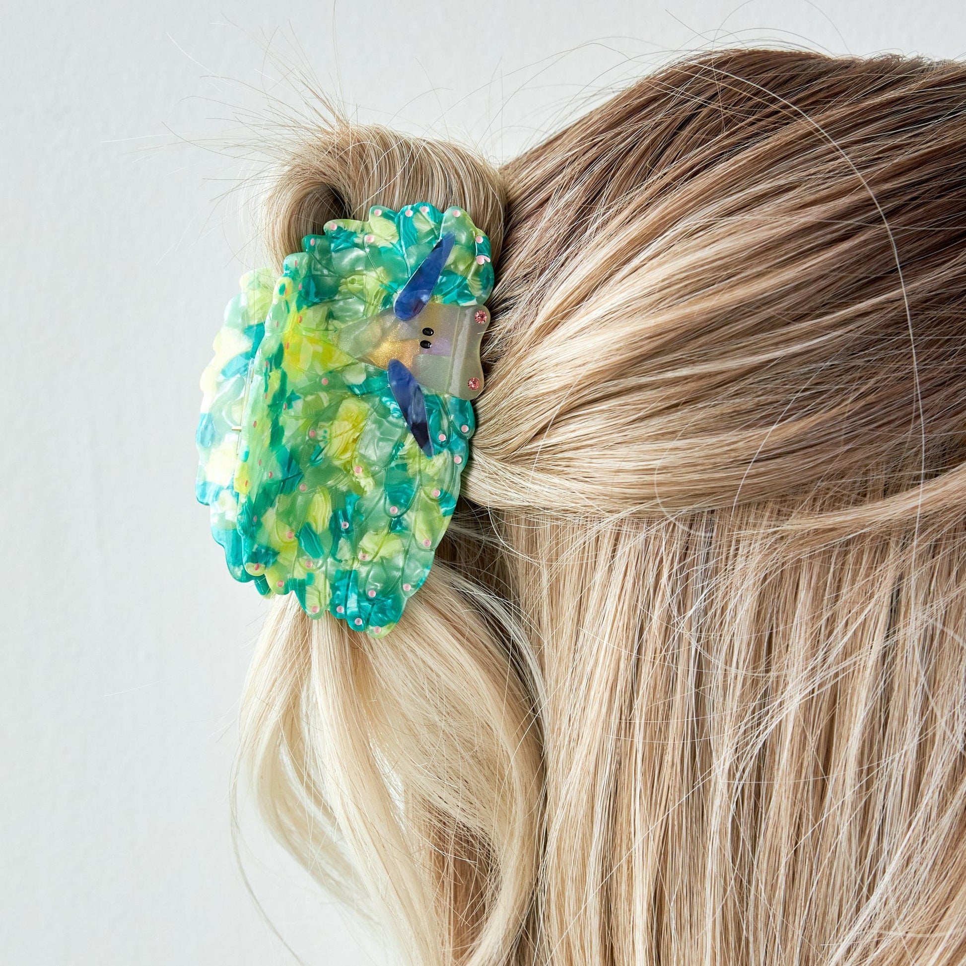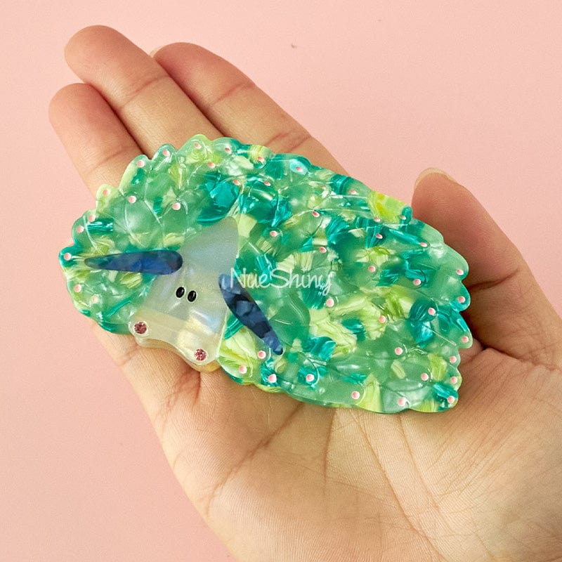 The design inspiration comes from the article titled 'These Cute Sea Slugs Are The Sheep Of The Sea' from IFLScience. Costasiella kuroshimae—also known as a "leaf slug", or "leaf sheep". These sea slugs are unique inhabitants of the ocean, often unseen by the naked eye but adorably charming nonetheless. We are captivated by their splendid and vibrant appearance, marveling at the intricate craftsmanship of the Creator. We aim to capture the beauty and charm of these small creatures in our design, hoping to bring vitality and liveliness to any hairdo of every beauty enthusiast, from the messy buns to the neat semi ponytails.