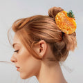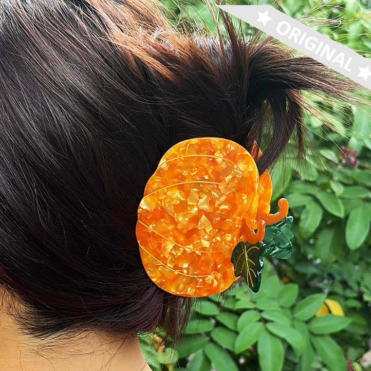 This pumpkin hairpin is a tribute to the spirit of thanksgiving, encouraging its wearer to celebrate the fullness of life and the blessings that come with hard work and dedication.