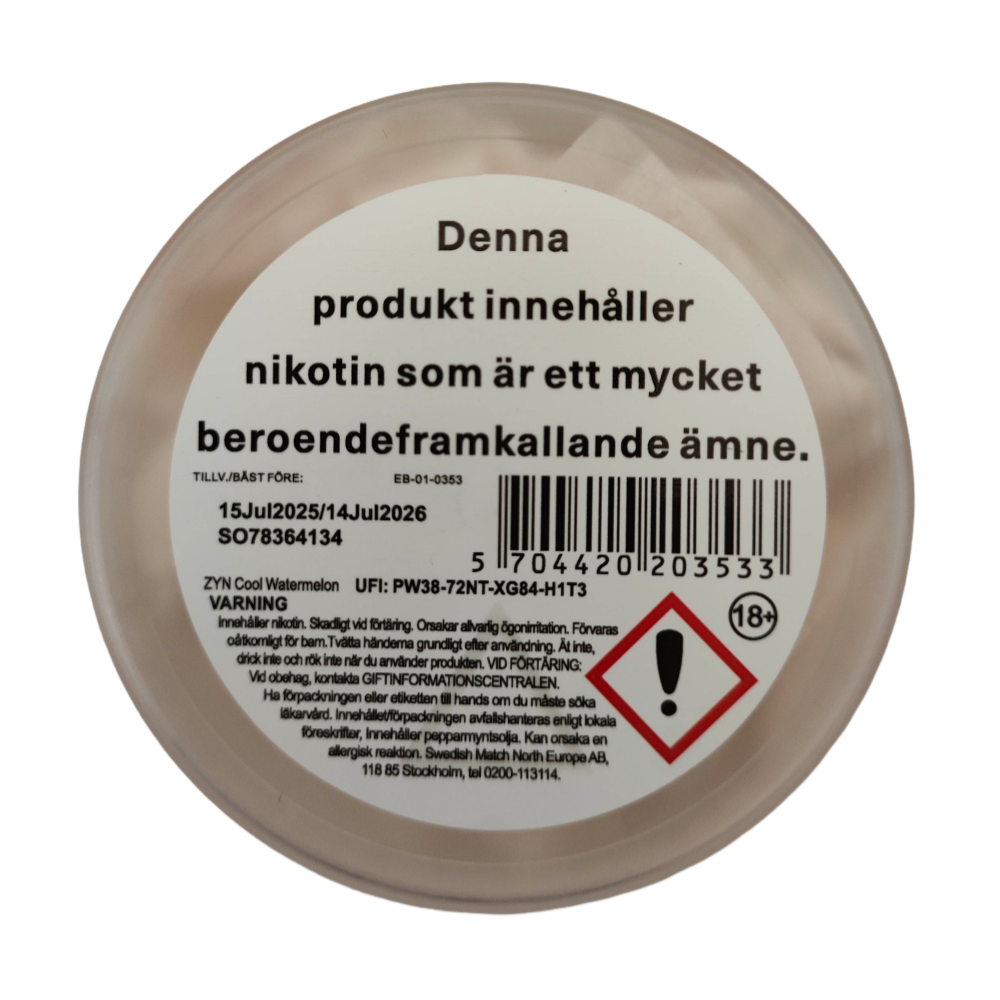 ZYN Cool Watermelon 9mg offers a refreshing and juicy watermelon flavor, complemented by a cooling mint finish. The sweet, fruity taste of ripe watermelon is perfectly balanced with a crisp, menthol-like chill, creating a refreshing and satisfying experience. Each slim, all-white pouch contains 9 mg of nicotine, delivering a strong and steady release for users who seek a more intense nicotine kick. The slim format ensures a discreet and comfortable fit under the lip, providing a clean, stain-free option for nicotine enjoyment. Crafted completely tobacco-free and made with high-quality plant-based materials, ZYN Cool Watermelon 11mg offers a modern, flavorful alternative for those looking for both fruitiness and a cooling sensation in their nicotine pouches. Specifications